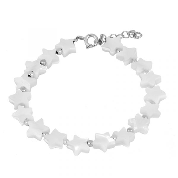 Pulsera en plata de primera ley con piezas de nácar y bolitas intercaladas