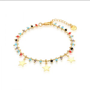 Pulsera Tahu de Plata de ley 925 y Circonita Multicolor acabada en oro amarillo de 18 quilates. El nombre de la línea lo avala: ATELIER Color. Joyas que se rinden a un diseño atípico que han colocado estos diseños sensuales en una posición privilegiada: formando parte del fondo de armario de la mujer actual. Diseños constituidos por circonitas de colores cuidadosamente terminados a mano. Una redefinición de diseños de joyería que se materializa en diseños puros y simples. Creaciones que expresan la singularidad femenina: ready- to-wear.