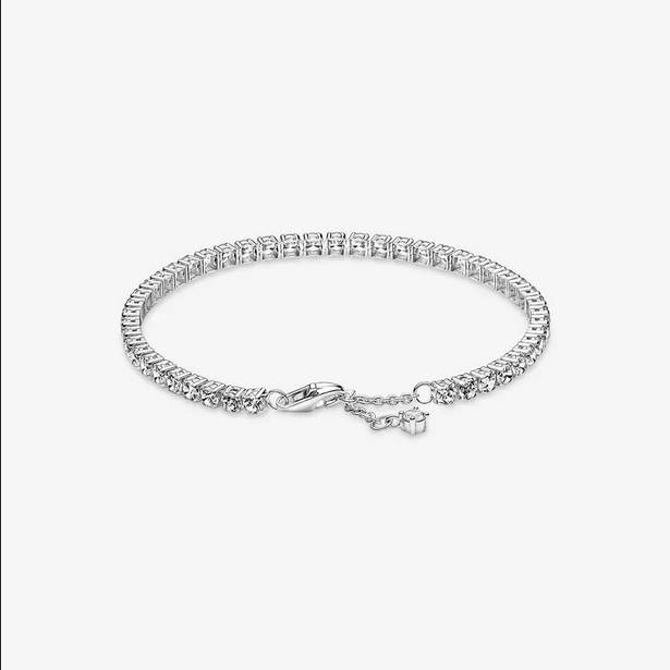 ¿A quién no le gustan las pulseras de tenis? Esta llamativa Pulsera Tenis Brillante en plata de primera ley, se presenta decorada con una audaz fila de brillantes circonitas cúbicas transparentes sujetas con virolas cuadradas, es perfecta para cualquier ocasión. Puedes ponértela sola o combinarla con otras pulseras en distintos colores y acabados metálicos para crear un look diferente y actual.