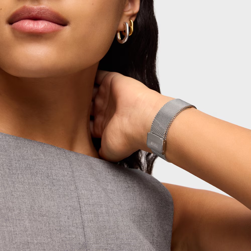 Reloj analógico TOUS MiniMesh con brazalete de malla milanesa de acero inoxidable y acero dorado. Dimensiones: 16,3 mm x 18,8 mm. Cristal: mineral plano octogonal. Funciones: hora y minutos. Impermeable a 3 ATM. Brazalete: 16mm x 16mm x 70mm / 16mm x 16mm x 110mm. Cierre ajustable con cierre de seguridad.