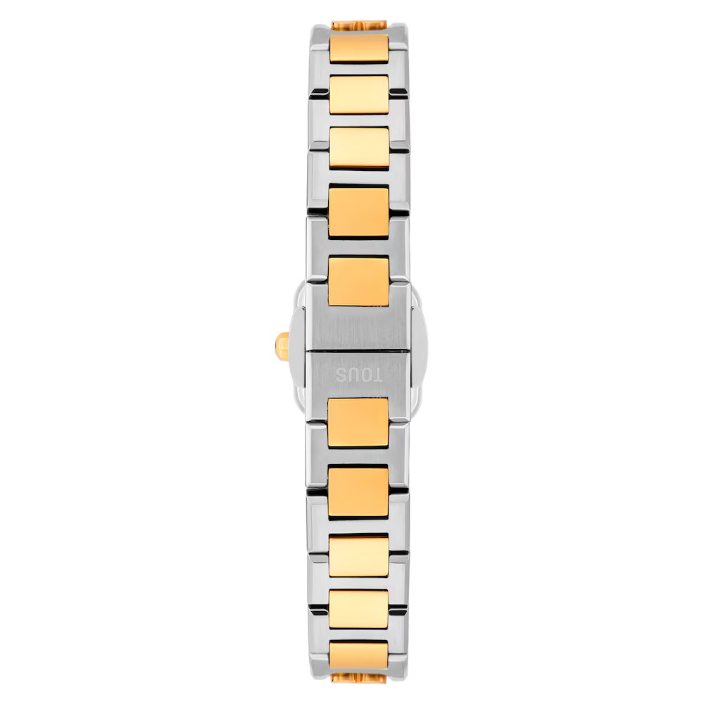 Reloj analógico TOUS Icon Time con brazalete de acero dorado con motivos oso. Dimensiones: 21,7 mm x 16,2 mm. Esfera de metal. Cristal mineral plano octogonal. Funciones: hora y minutos. Impermeable a 3 ATM. Movimiento analógico de cuarzo japonés. Brazalete: 82,8mm x 11,4mm x 11,4mm. Cierre mariposa con pulsadores.
