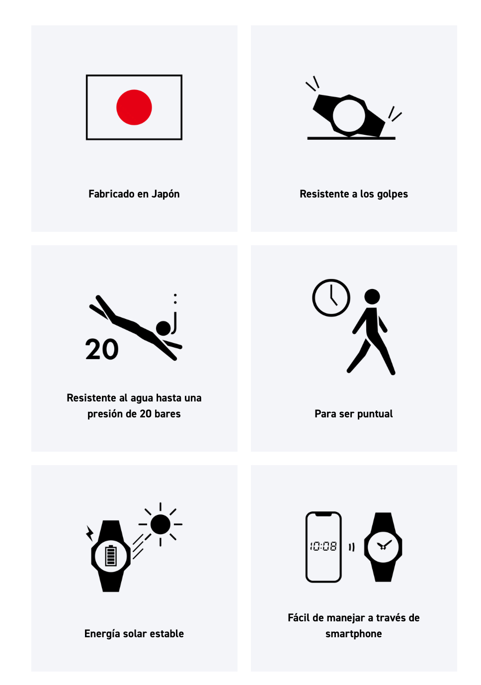 Ahorro de energía (las manecillas se detienen para ahorrar energía cuando el reloj se deja en la oscuridad)