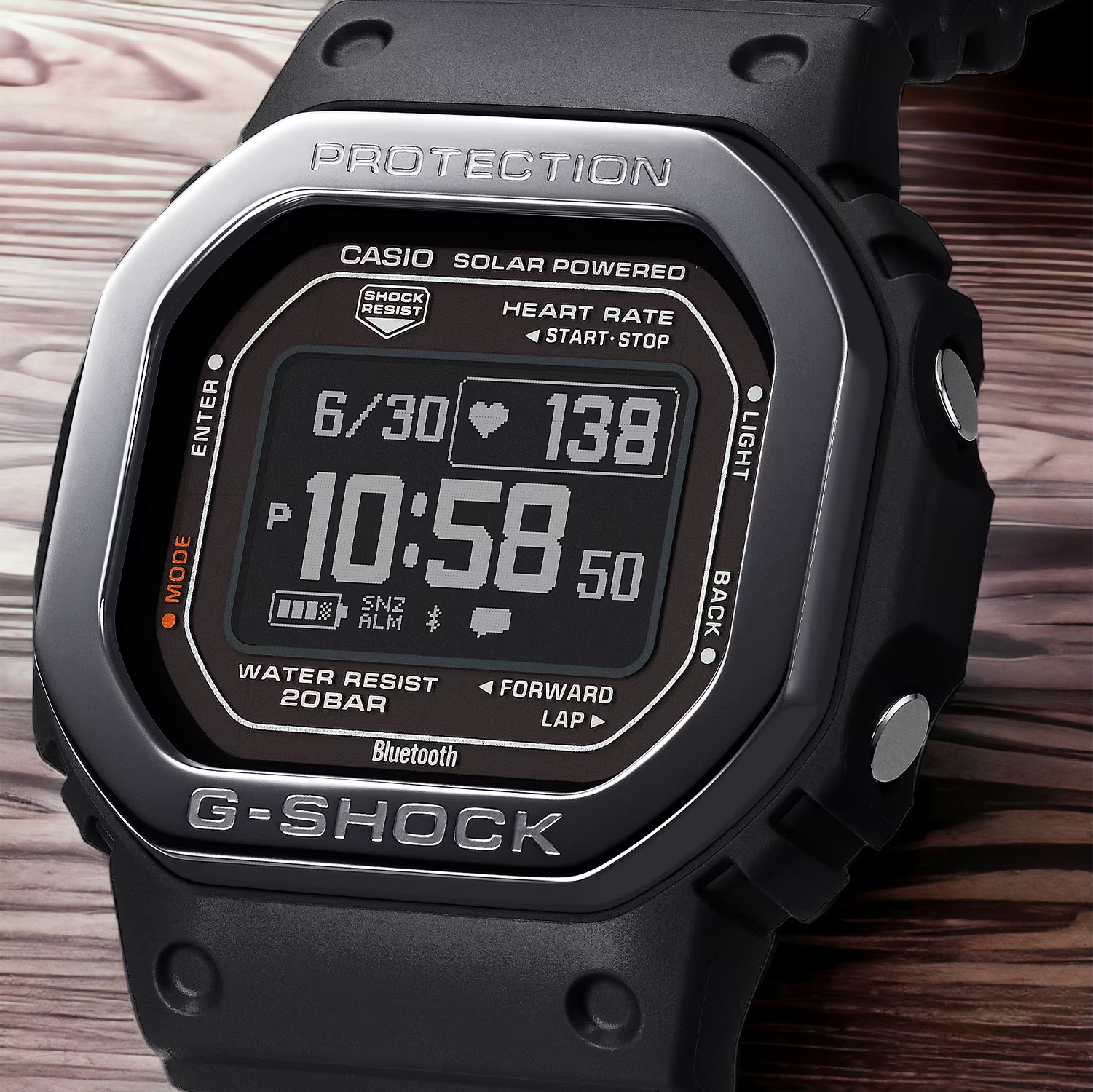Toma el control y prepárate para ponerte a prueba con el DW-H5600, de la línea deportiva de relojes G-SQUAD. Este reloj multideporte viene repleto de funciones para el seguimiento de todo tipo de entrenamientos. Mide tu frecuencia cardíaca con el sensor óptico y usa el acelerómetro para contar los pasos. Además, con la tecnología PolarTM puedes analizar los entrenamientos, hacer un seguimiento de la recuperación después del sueño y realizar ejercicios de respiración; incluso puedes usar el oxímetro para medir los niveles de oxígeno en la sangre. Ya sea para correr, caminar o hacer ejercicio, este reloj cuenta con una pantalla LCD de Memory in Pixel (MIP) de alta definición para una lectura fácil y de alta visibilidad en cualquier situación. El deporte y la salud también van de la mano con el cuidado del medio ambiente, porque el nuevo G-SQUAD está producido a partir de materiales orgánicos renovables, tanto el bisel como la correa. , los plásticos de biomasa son materiales de alto peso molecular, sintetizados química o biológicamente, que ayudan a reducir el impacto ambiental y acercan el mundo a una economía circular. Carga por USB o con energía solar para mantenerse siempre conectado. *La marca y los logotipos de PolarTM son marcas comerciales registradas propiedad de Polar Electro Oy