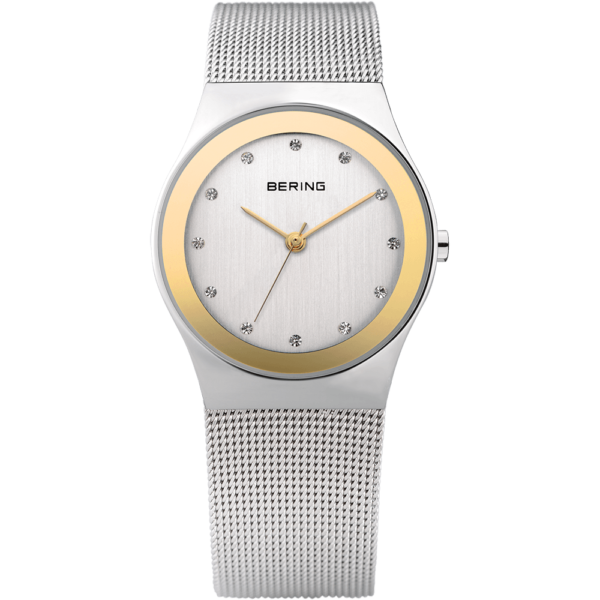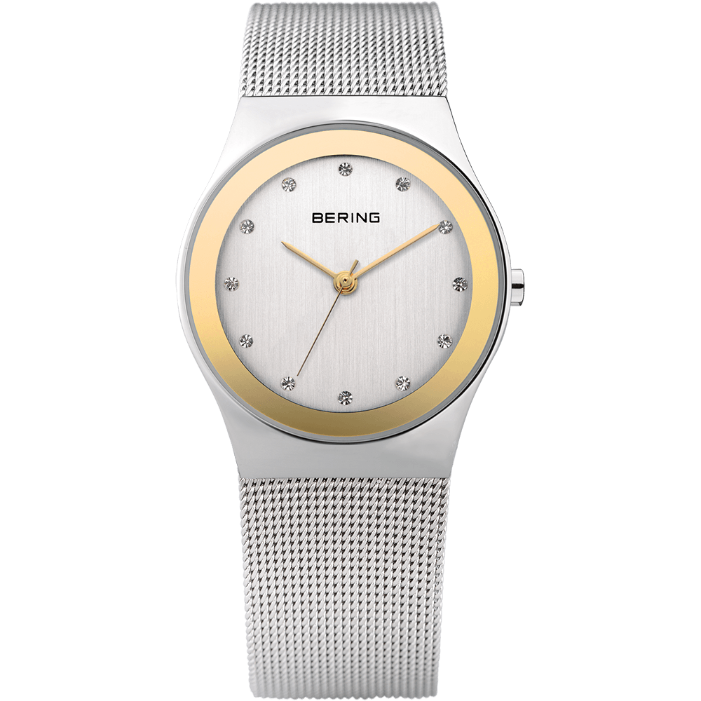 Reloj clásico de mujer con brazalete de malla en distintos acabados. Esfera adornada con SWAROVSKI ELEMENTS y movimiento de cuarzo.