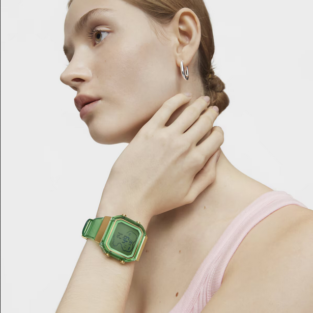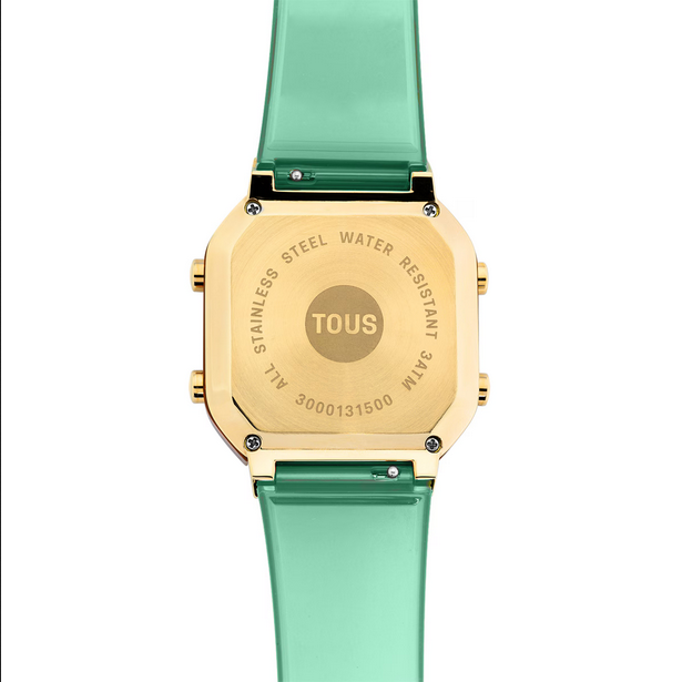 La declinación más fresca y joven del best-seller D-Bear. La caja está hecha con policarbonato de colores con acabado efecto cristal completamente transparente que deja ver su interior. Las correas son de poliuretano transparente del mismo color que la caja consiguiendo este efecto fresh en todas sus versiones. La pantalla digital juega con una segundera que construye el oso a medida que avanzan los segundos. Una colección que es pura expresión de color y frescura para este verano.