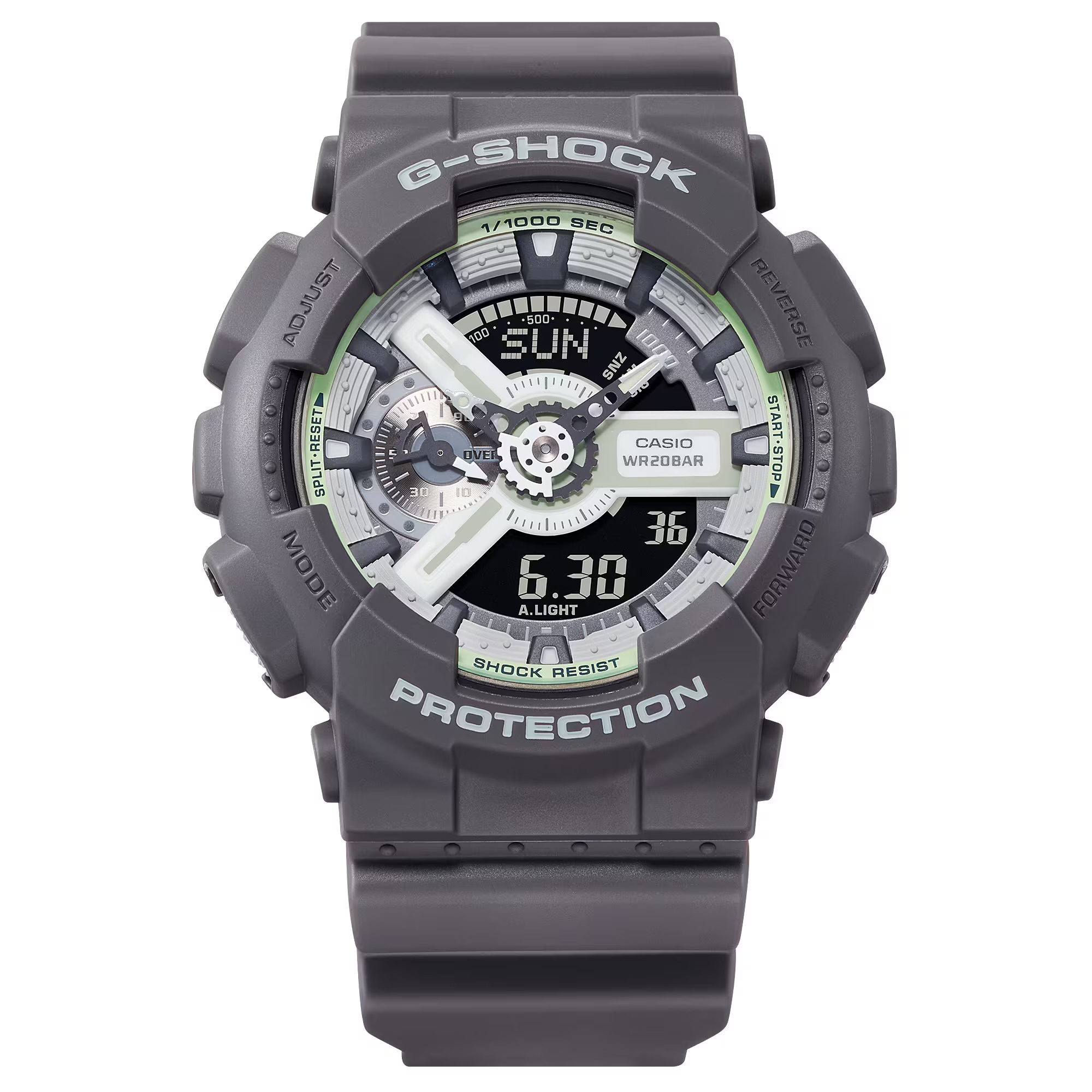 Libera todo tu potencial y muestra lo oculto. Presentamos el G-SHOCK que brilla en la oscuridad. Esta gama cuenta con partes luminiscentes sobre una base gris oscura, un diseño inspirado en los talentos ocultos que todos tenemos, pero rara vez mostramos. Empezamos con una base de gris para evocar la oscuridad y, luego, añadimos componentes luminiscentes y detalles en blanco a la esfera, para crear un reloj monocromático con un brillo muy especial. Busca un lugar oscuro y comprueba cómo este atrevido diseño cobra vida con un resplandeciente brillo.