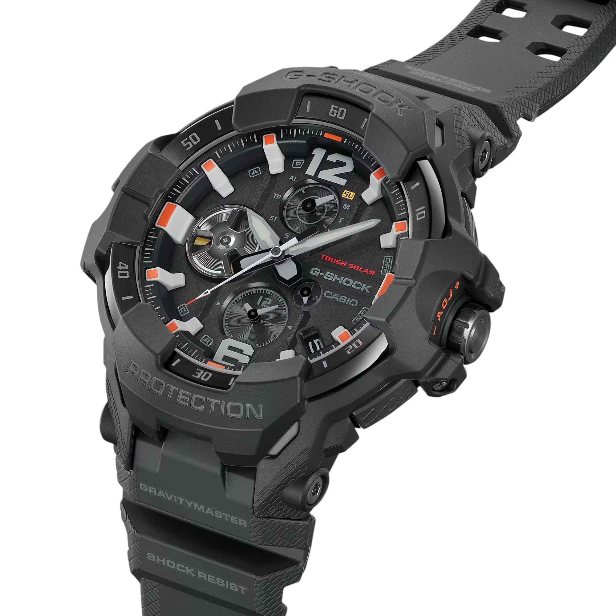 El módulo del reloj está rodeado de elementos de alphaGEL, que hacen que el reloj sea aún más resistente contra sacudidas y vibraciones. El alphaGEL es una estera de silicona muy flexible y que actúa como amortiguador sobre el módulo. - Sistema de energía solar