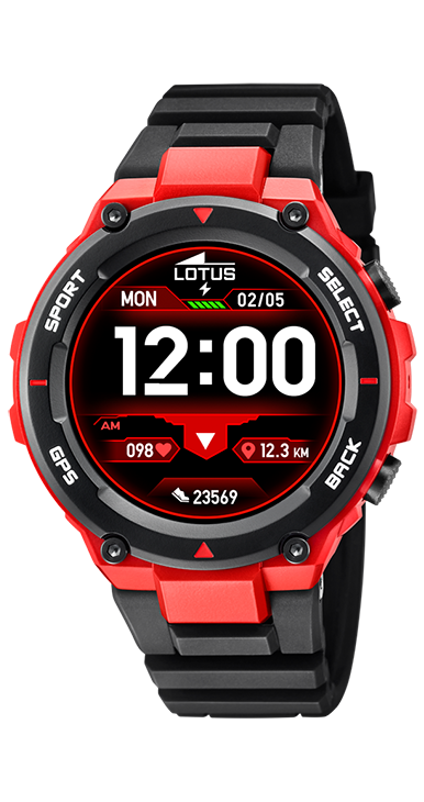 Smartwatch Lotus Smartime 50024/1 para hombre. Con caja de plástico equipado con correa de caucho y pantalla táctil TFT IPS de 1.28′, antena GPS y conexión Bluetooth 5.0
