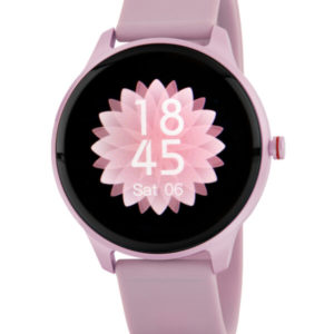 Material Brazalete: Silicona color rosa con motivos retro en morado, fucsia, turquesa y amarillo.