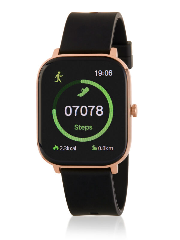 Material Brazalete: Acero color rosegold + correa extra de silicona color negro