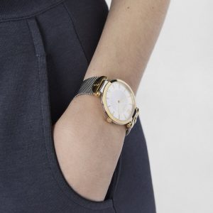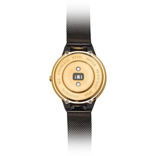 Reloj Rond Connect de Acero IP Dorado Correa Mesh Negra