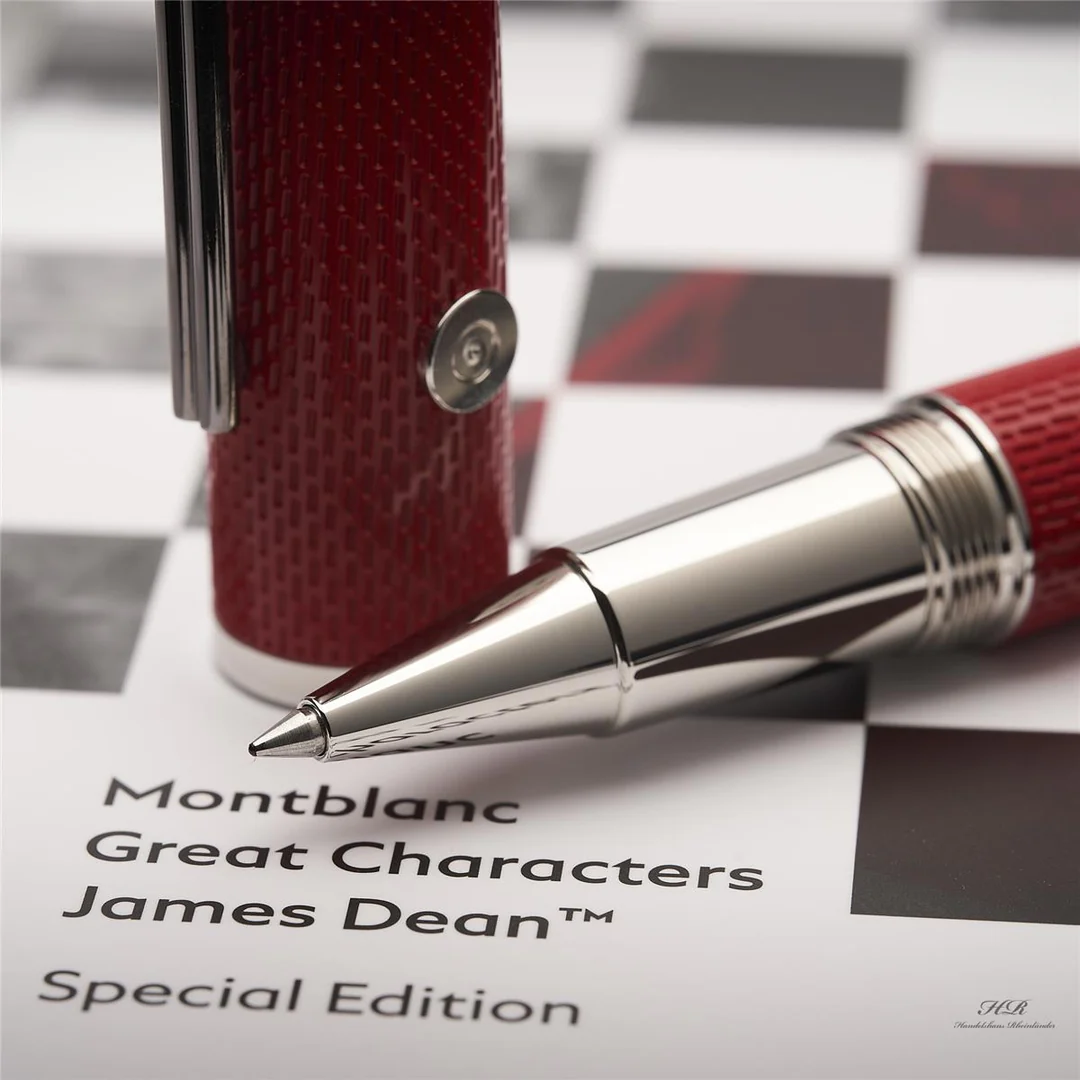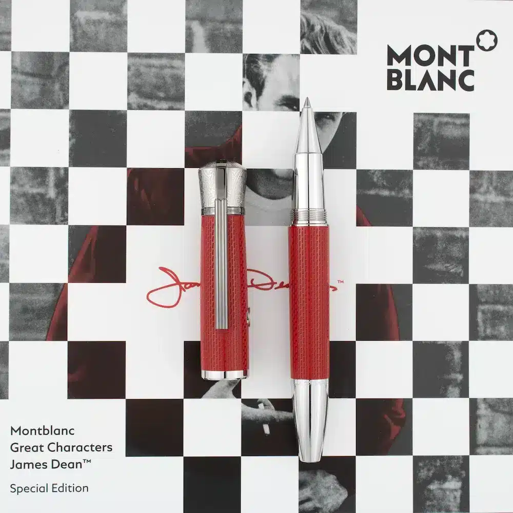 Las personas inspiradoras influyen en nuestros pensamientos y en nuestra vida cotidiana; nos ayudan a hacer que lo cotidiano sea motivador. Desde 2009, Montblanc rinde homenaje a algunas personas excepcionales con la colección Great Characters, cuyas vidas y obras han tenido un impacto duradero en la civilización humana. Montblanc presenta una colección inspirada en James Byron Dean, un actor estadounidense e icono cultural de la desilusión adolescente y el distanciamiento social ejemplificado por el título de su película más célebre, “Rebel Without a Cause”, donde interpretó el papel de un adolescente con problemas, Jim Stark. Esta edición presenta un capuchón y un cuerpo de resina preciosa roja que se asemeja a la chaqueta de cuero roja que usa Dean en la película, mientras que los patrones están inspirados en los jeans que usaba. El clip es una pistola que rinde homenaje a su famosa escena en la película de 1956 “Gigante”. El anillo del capuchón está grabado con una de las citas más famosas de James Dean: “Sueña como si fueras a vivir para siempre. Vive como si fueras a morir hoy”.