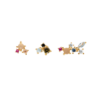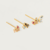 Los pendientes la Palette se componen de tres pendientes para que puedas combinar como quieras y crear infinitas combinaciones, realizados en plata de ley con baño de oro de gran calidad y siete tonos de piedra natural