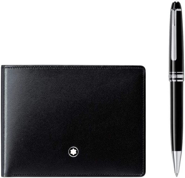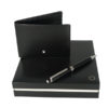 Set formado por boligrafo Platinum y billetera en piel negra con compartimento para 6 tarjeta y espacio para billetes