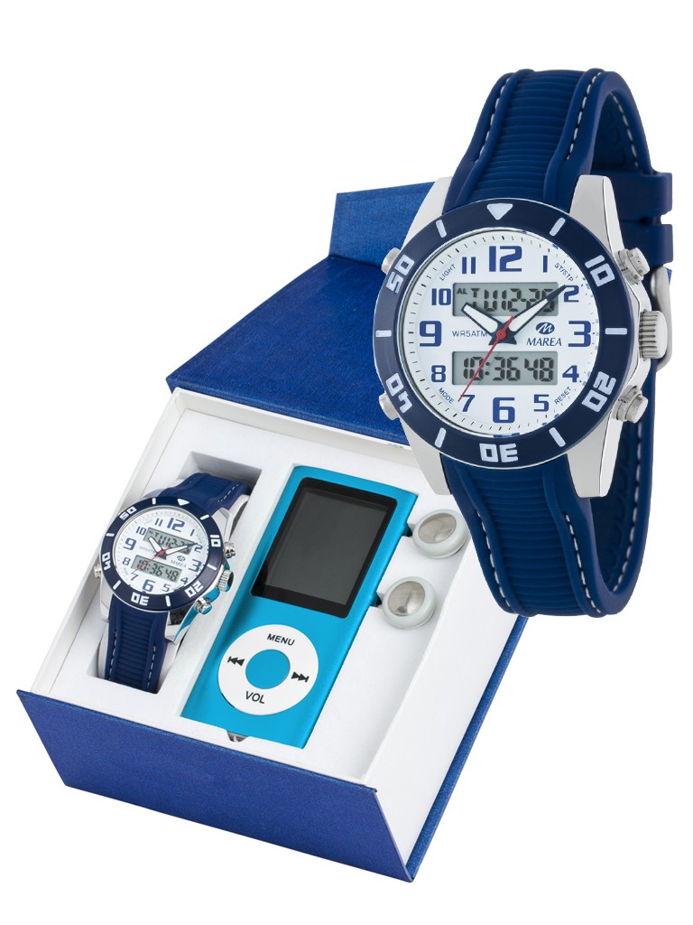 Reloj analogico y digital con correa de silicona azul +estuche y mp4 de regalo