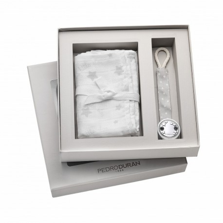 Set Stella, muselina y pinza de chupete con textil, gris claro Referencia: 07500502