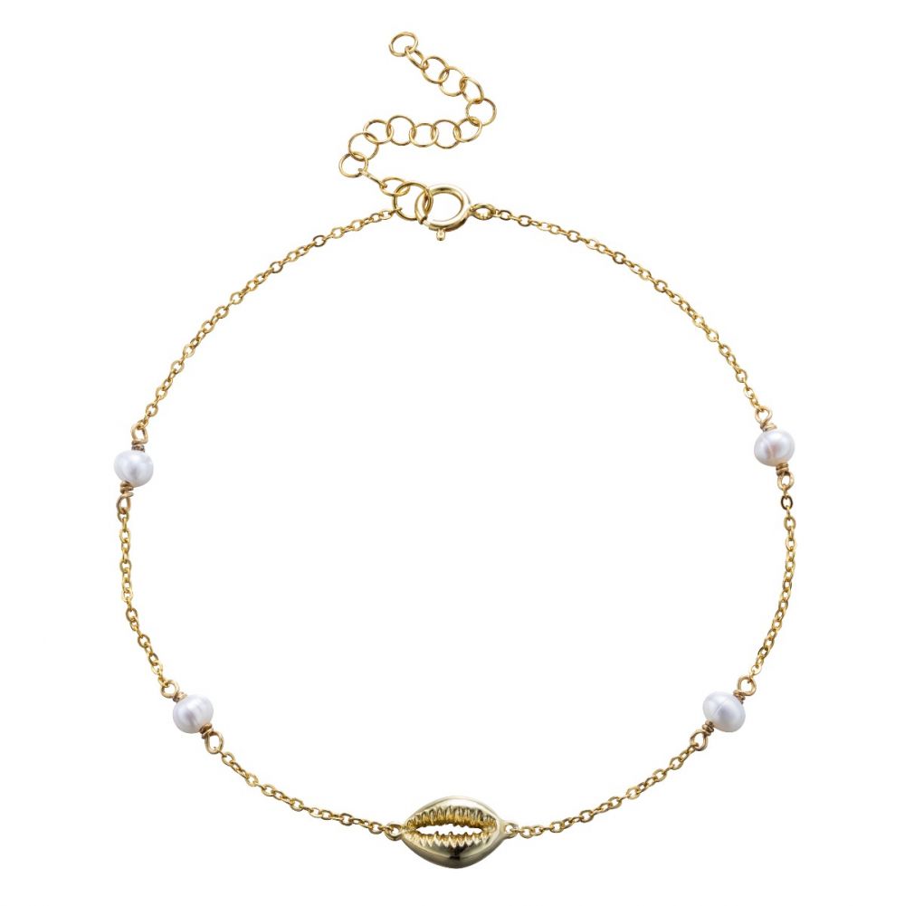 Tobillera en PLata de Ley Concha y Perlas Gold