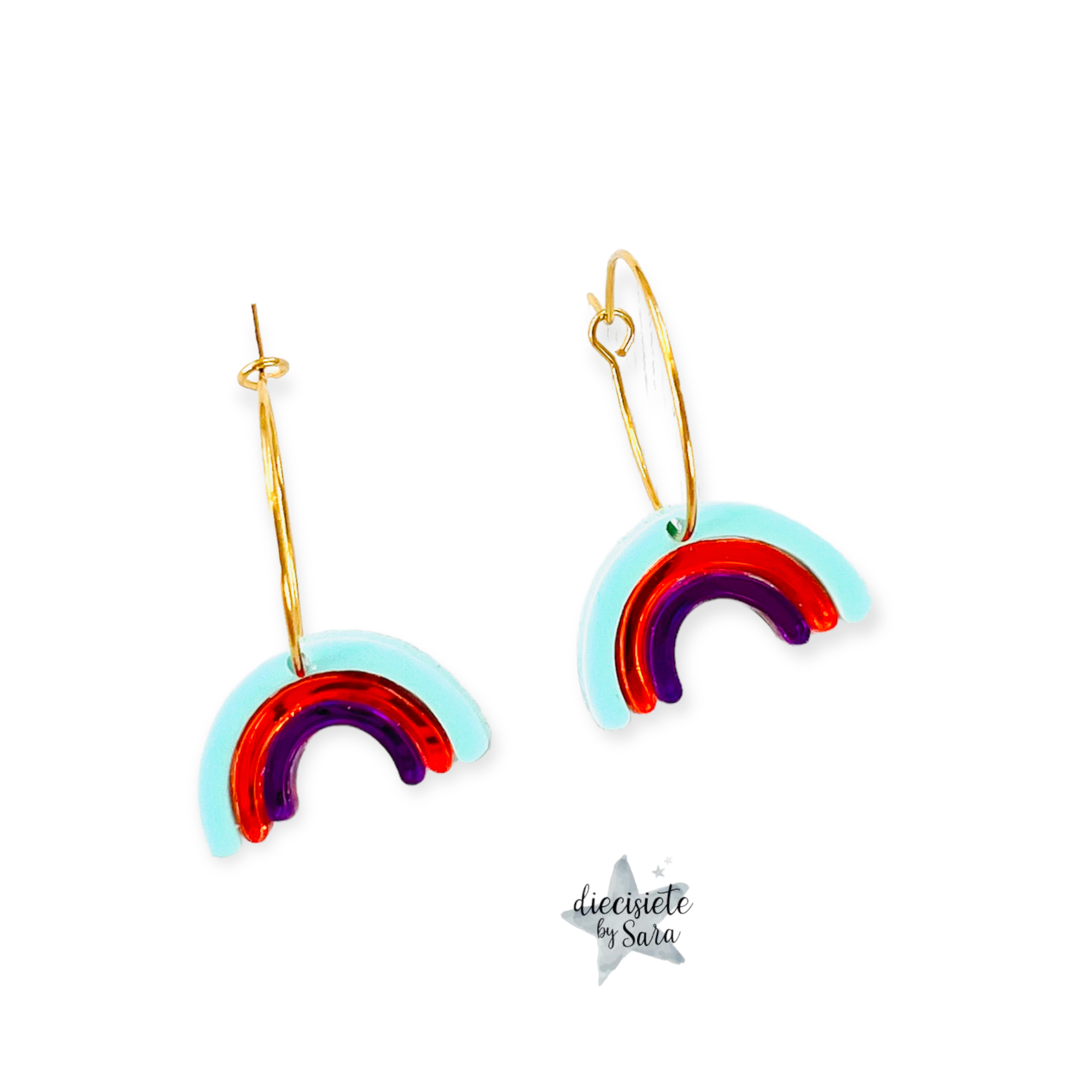 Pendientes Mini Estrellita Doble Azul y Oro